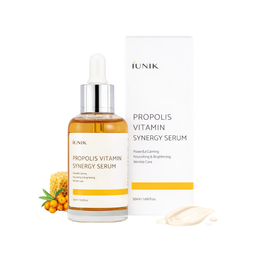 iUNIK Propolis Vitamin Synergy Serum – tai koncentruotas serumas, sukurtas odai, kuriai reikia intensyvaus nuraminimo, švytėjimo ir atstatymo. Propolio ekstraktas (70 %) stiprina odos barjerą, mažina sudirgimus ir skatina odos atsinaujinimą, o vitaminai (vitaminas C ir niacinamidas) padeda sulyginti odos toną bei suteikti sveiką švytėjimą.