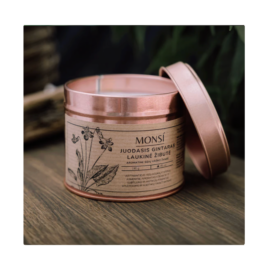Aromatinė sojų vaško žvakė metaliniame indelyje – tobula namams, dovanai ir kelionėms